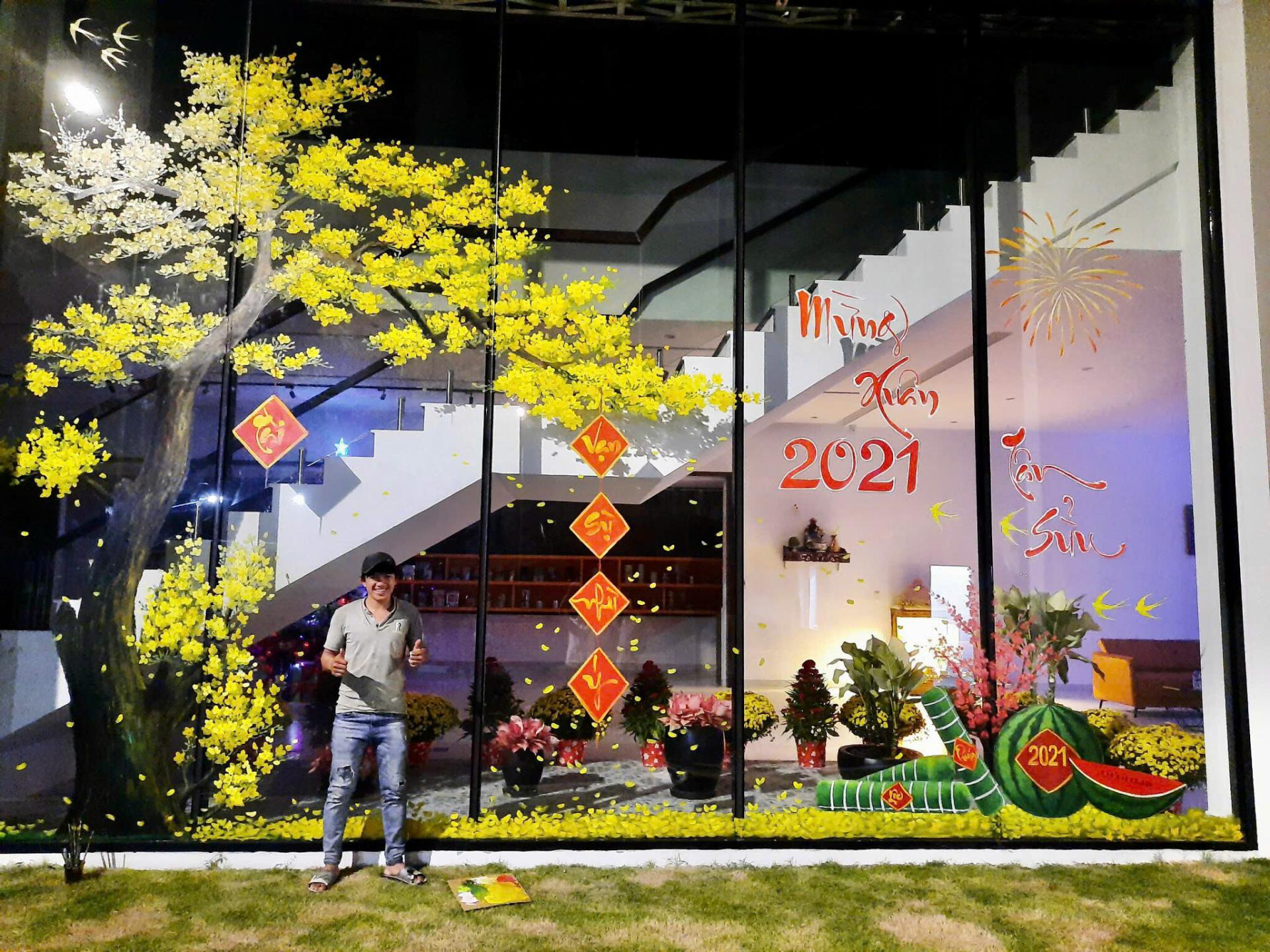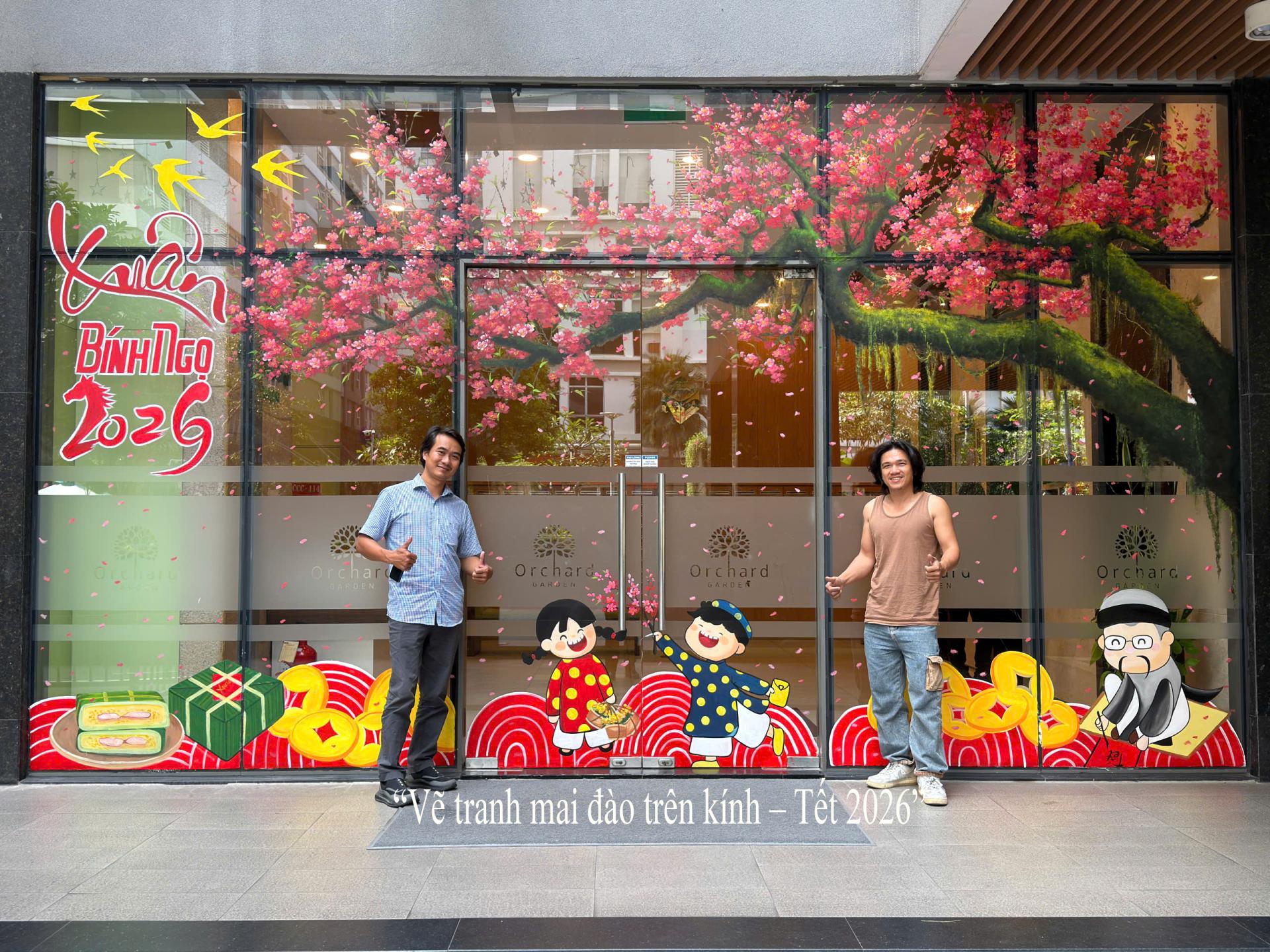 Không còn giới hạn trong các vật trang trí truyền thống, tranh kính mai đào Tết 2026 mang đến diện mạo mới cho nhà phố. Các họa tiết hoa xuân được vẽ trực tiếp lên kính giúp không gian trở nên sinh động, tươi mới và đậm không khí Tết.