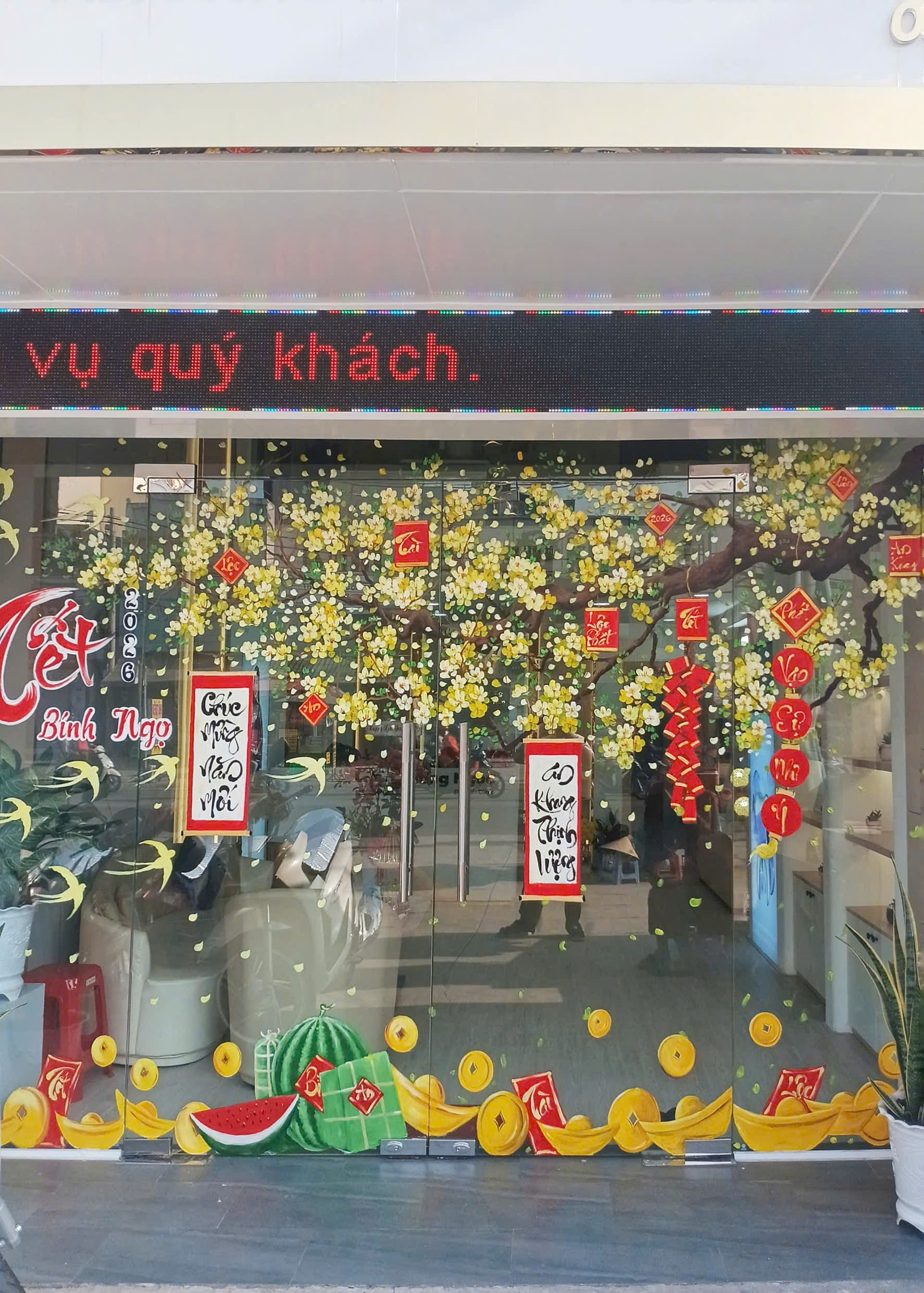 trang trí kính spa tết